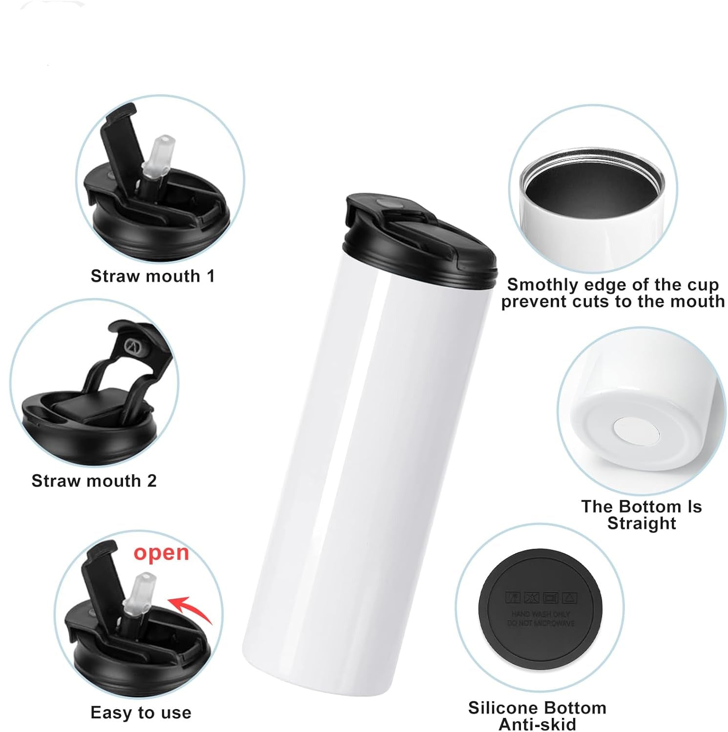 - je ca. 24,2 x 7,2 cm groß (600 ml/20 oz), mit Schraubdeckel und Plastikstrohhalmes, es gibt insgesamt 2 Trink Möglichkeiten